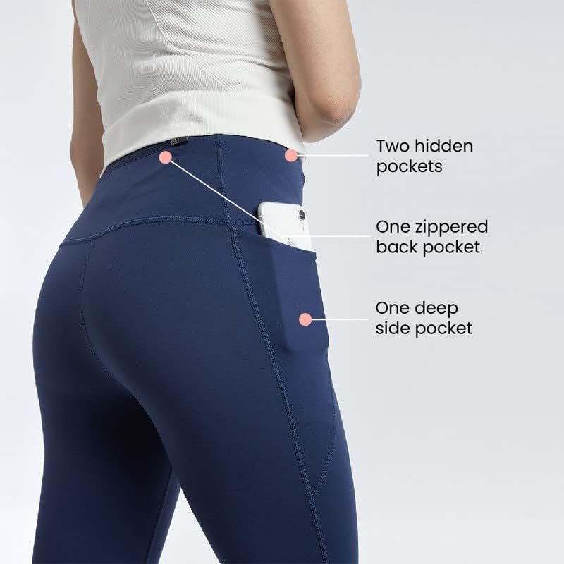 - 4 pockets – Side pocket & back zipper pocket allow you to slide in your phone or secure your cash, card & valuables. 2 neatly hidden pockets on the waistband for storing keys, earphones, etc. for better focus on your movements rather than your valuables.