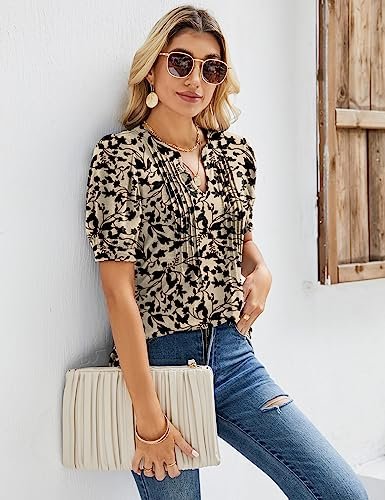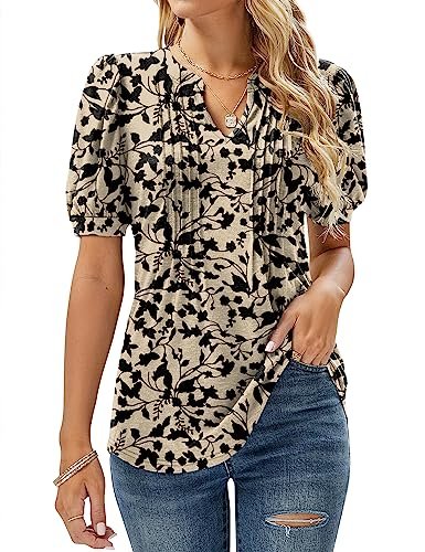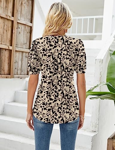 • Designs: Ladies summer tops loose fitting with sexy V-neck, pleated front, puff short sleeve,casual flowy style, curved hem T-Shirt, womens tunic tops.