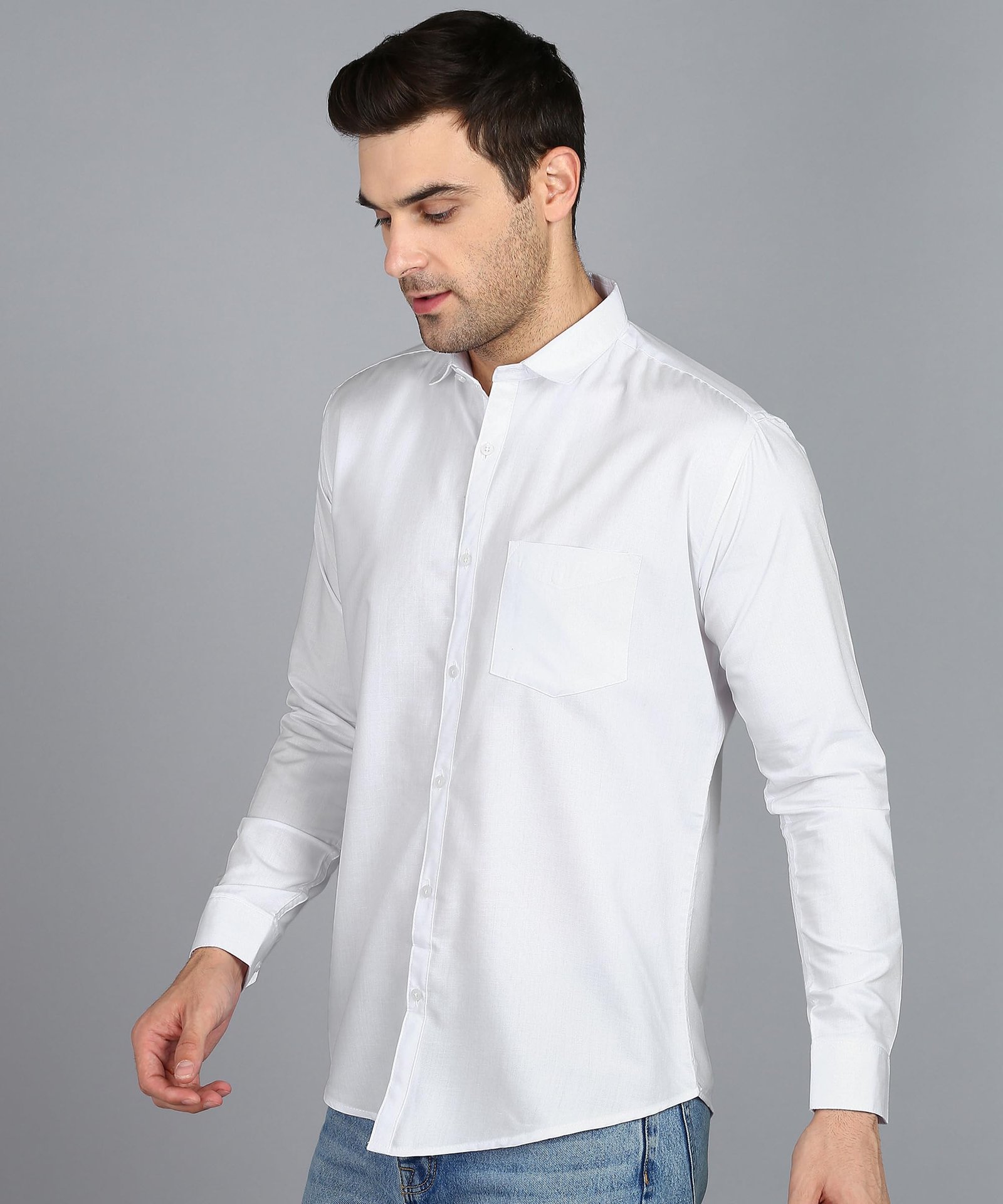 • Spread Collar & Button Down: Classic button-down style with a spread collar for a polished, professional finish. | Full Sleeves & Curved Hemline: Elegant full sleeves with a stylish curved hemline, ideal for formal wear.