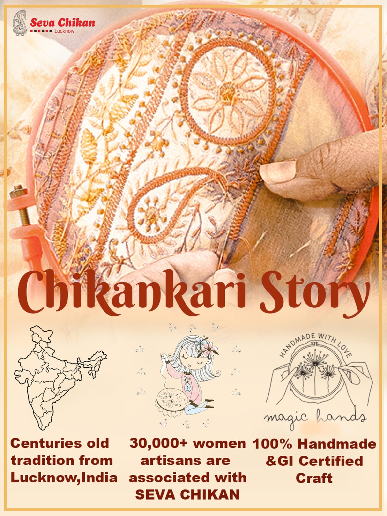 - Chikankari Embroidery: Bakhiya & Phanda , Thread Color: white