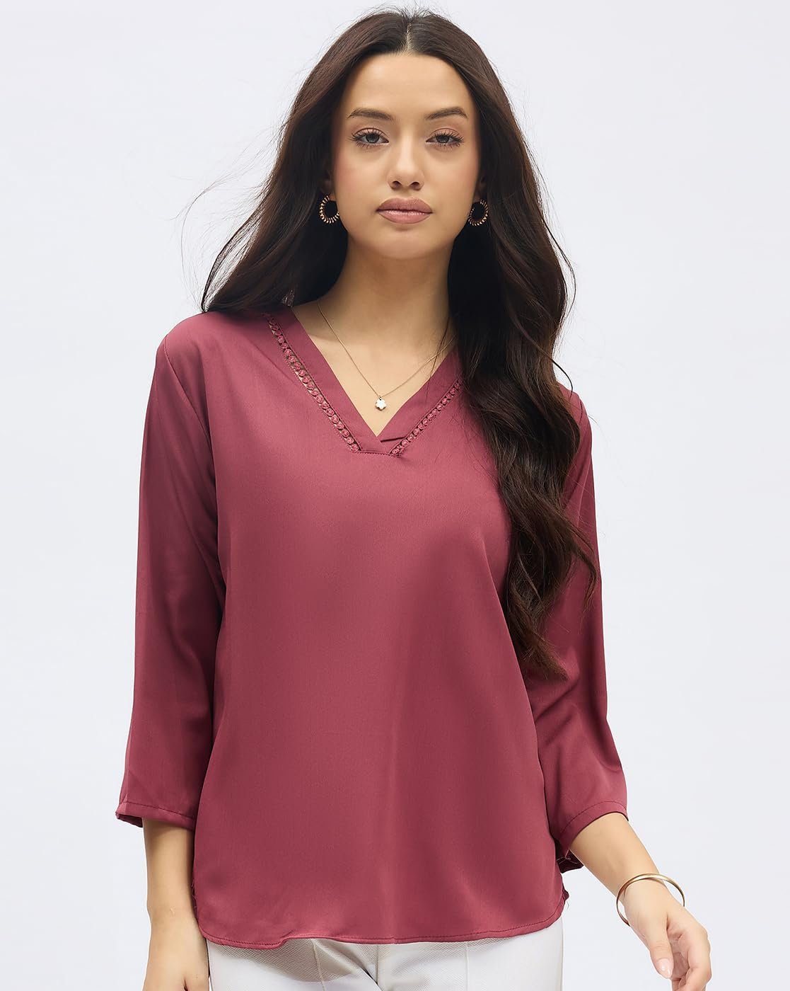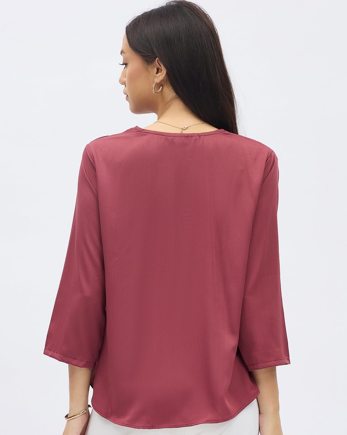The SheWill Printed Top with Contrast Tipping is designed to perfectly balance modern style and everyday comfort, making it an essential addition to every woman’s wardrobe. Crafted from lightweight and breathable fabric, this top ensures you stay cool and at ease even during long summer days or while traveling, giving you a comfortable yet fashionable look wherever you go. The trendy printed pattern, enhanced with contrast tipping on the neckline and sleeves, adds a refined touch that makes it stand out as both a chic ethnic-inspired piece and a versatile western top. Its flattering regular fit complements all body types, including curvy and plus sizes, with this piece available up to 3XL, ensuring inclusivity and confidence for every woman. The soothing mauve color brings a subtle elegance and pairs effortlessly with jeans, jeggings, skirts, trousers, or even ethnic bottoms, giving you the flexibility to create endless outfit combinations. Perfect as a casual day-wear option, travel essential, or even a stylish pick for brunches and casual outings, this top is lightweight, easy to pack, and low-maintenance, which makes it an ideal choice for women on the go. Its breathable texture allows airflow, keeping you sweat-free and comfortable, while the fabric retains its shape and smoothness even after multiple washes, making it a durable and reliable choice. Whether you prefer styling it with denim for a chic western look or layering it with statement jewelry and ethnic bottoms for a fusion vibe, the SheWill Printed Top adapts seamlessly to your personal style. Designed with attention to detail and keeping modern women’s needs in mind, it offers the perfect blend of elegance, functionality, and comfort, making it not just another top, but a wardrobe staple that you’ll reach for repeatedly. With its stylish appeal, inclusive sizing, and versatile design, this piece from SheWill is more than just a casual wear item – it is a thoughtful fashion choice for confident women who appreciate comfort without compromising on style.