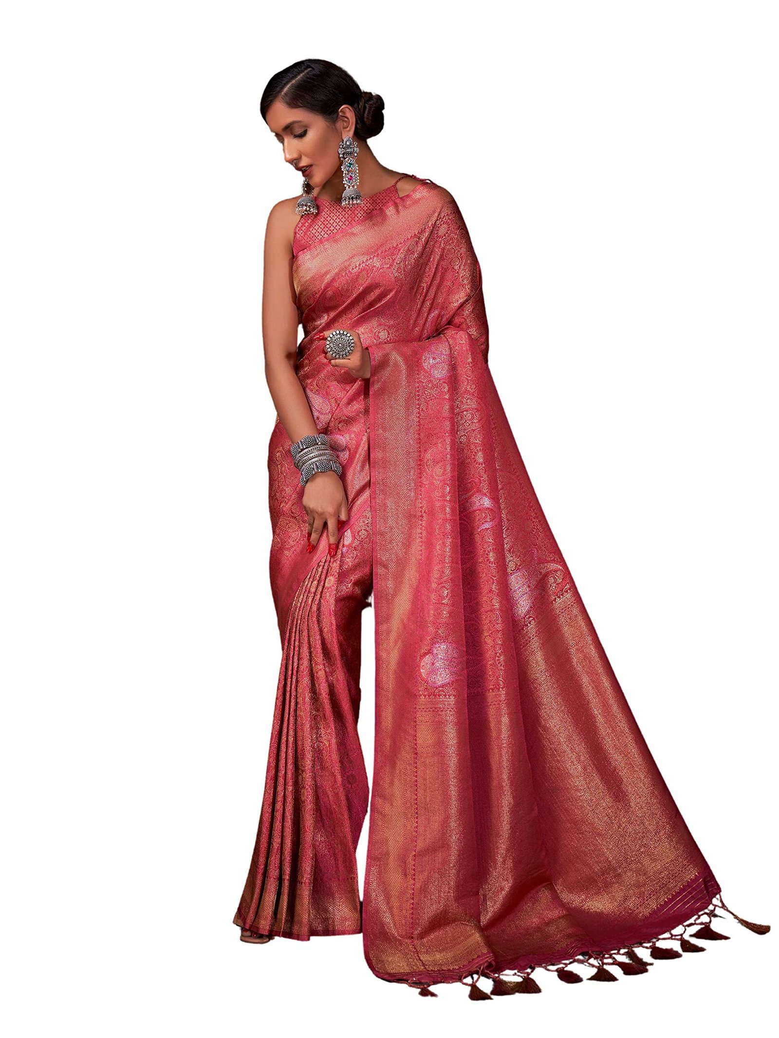 • PREMIUM QUALITY: This Woven Gold Copper Silver Zari Design Saree is made from premium quality Art silk material. It comes with an unstitched Brocade Blouse with Gold Copper Silver Zari Border